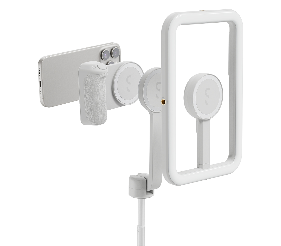 Turns your smartphone (with MagSafe system) into a studio with SnapGrip Pro camera grip with power bank, SnapStand Max light stand, SnapStudio Light LED ring light & a bag for transport