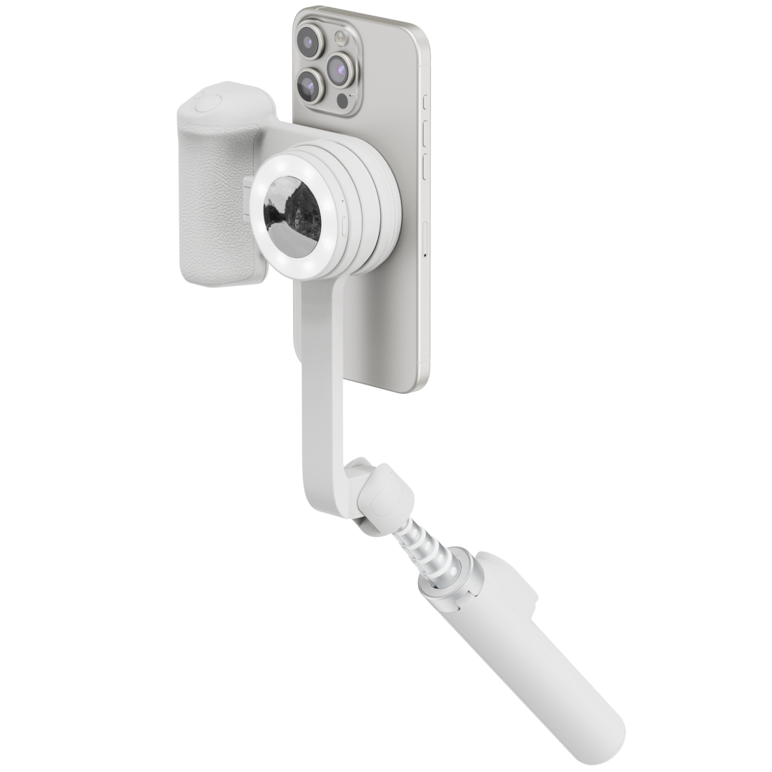 Easy entry into mobile content creation. The SnapTravel Kit Essential provides everything you need to shoot and create content on the go. This lightweight and budget-friendly bundle includes the SnapGrip Essential, SnapStand Selfie and SnapPocket Light, all designed for portability, simplicity and seamless performance.Ergonomic comfort and stability. The SnapGrip Essential provides a secure grip and features a Bluetooth trigger that facilitates stabilised photography. The grip can also be used as a magnetic stand so you can rotate your smartphone for portrait or landscape shots, or rest it upright for hands-free vlogging, video calls and selfies.