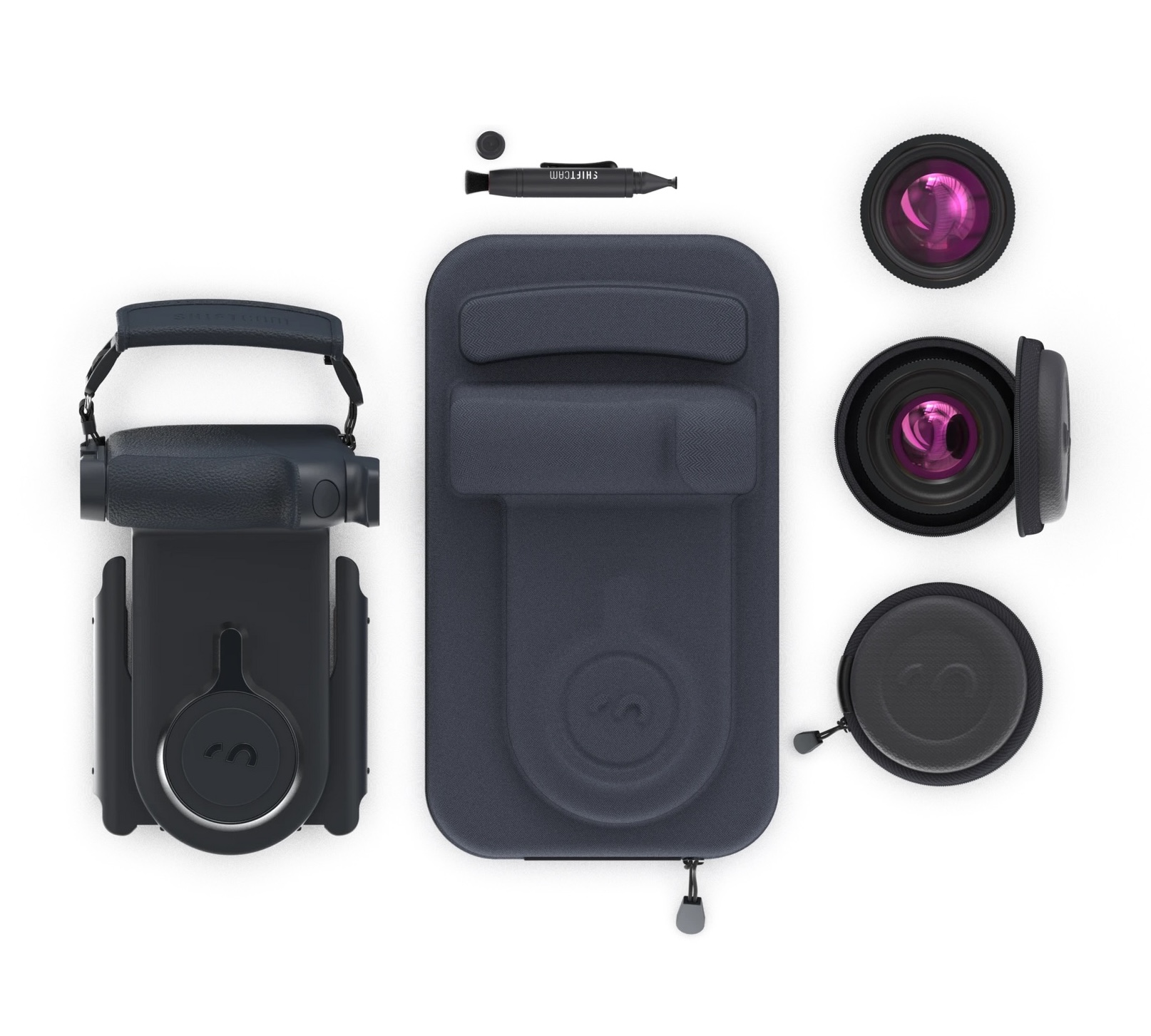 Der ShiftCam ProGrip ist ein ergonomischer Griff mit eingebauter Batterie, der einer Kamera nachempfunden ist. Damit kannst du mit deinem Smartphone noch einfacher und bequemer grossartige Fotos und fantastische Videos aufnehmen. Er hat praktische Features wie eine drahtlos gesteuerte Auslösertaste, eine integrierte Powerbank zum kabellosen Laden für ganztägige Aufnahme-Sessions, eine drehbare Halterung zum Wechseln zwischen Hoch- und Querformatmodus sowie eine Handschlaufe für zusätzlichen Halt und Stabilität.
