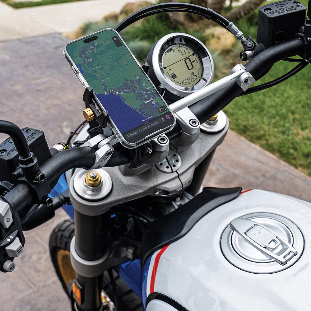Die HandleIT™ Universal Clamp Device Mount ist die robuste Lösung für alle, die ihr Smartphone auch im härtesten Gelände sicher befestigen wollen. Die per Drehknopf angezogene Klemme bietet einen schraubstockartigen Halt und schützt Ihr Gerät zuverlässig bei Erschütterungen und auf unebenem Terrain.Gefertigt aus Aluminium mit Edelstahl-Montagematerial, ist die Halterung extrem widerstandsfähig und langlebig. Das verstellbare Kugelgelenk ermöglicht eine flexible Blickwinkelanpassung, während die 360°-Montageoptionen maximale Vielseitigkeit bieten. Rutschfeste Polsterung sorgt für zusätzlichen Grip und schützt Ihr Gerät vor Kratzern. Die Halterung ist kompatibel mit Gerätebreiten von 56mm bis 89mm und lässt sich an Lenker und Stangen mit einem Durchmesser von 13mm bis 44mm montieren – schnell und werkzeugfrei.