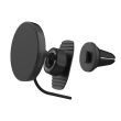 Innovative magnetische Halterung mit 25W Qi2 Wireless Charging für das Armaturenbrett oder Lüftungsgitter, schwenkbarer Sockel & voll einstellbarer Halterungskopf inkl. 35W Autoladegerät & Kabelmanagement-Clip - Schwarz