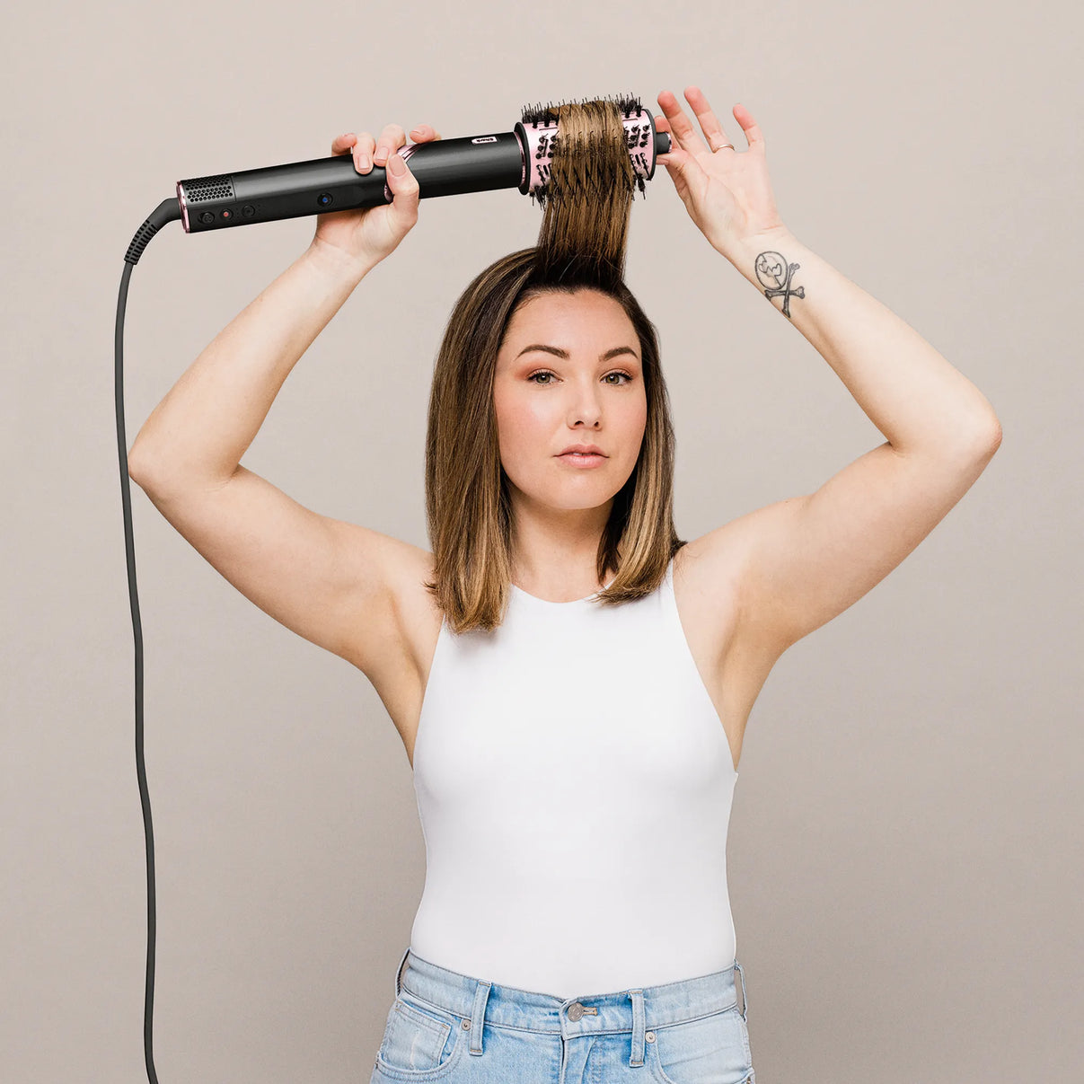 Erhöht die Geschmeidigkeit und verringert Frizz, während sie mit leistungsstarkem Luftstrom Volumen und Sprungkraft verleiht.Nur mit Shark FlexStyle (Serie HD400) kompatibel.