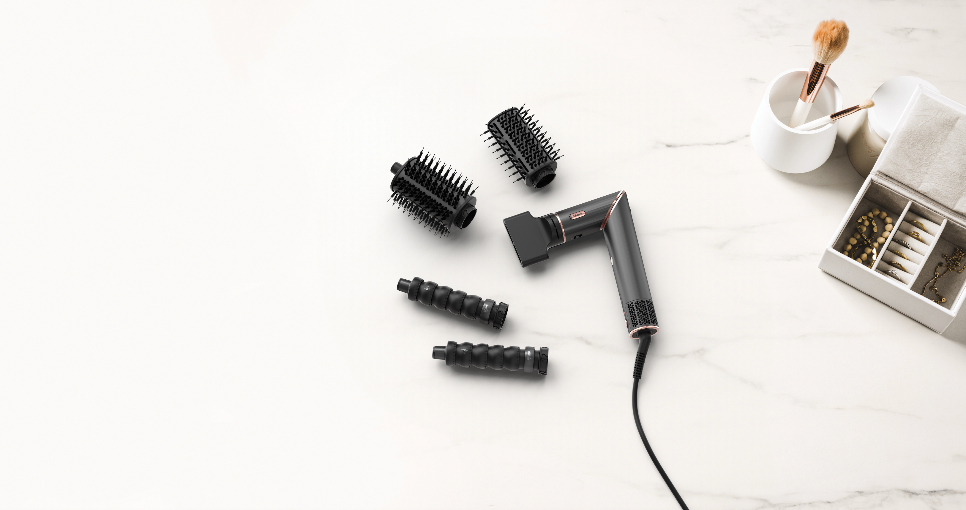 Locken, Volumen, glätten und definieren mit 5 Styling-Aufsätzen. Perfekt für alle Haartypen, für #allhairkind.