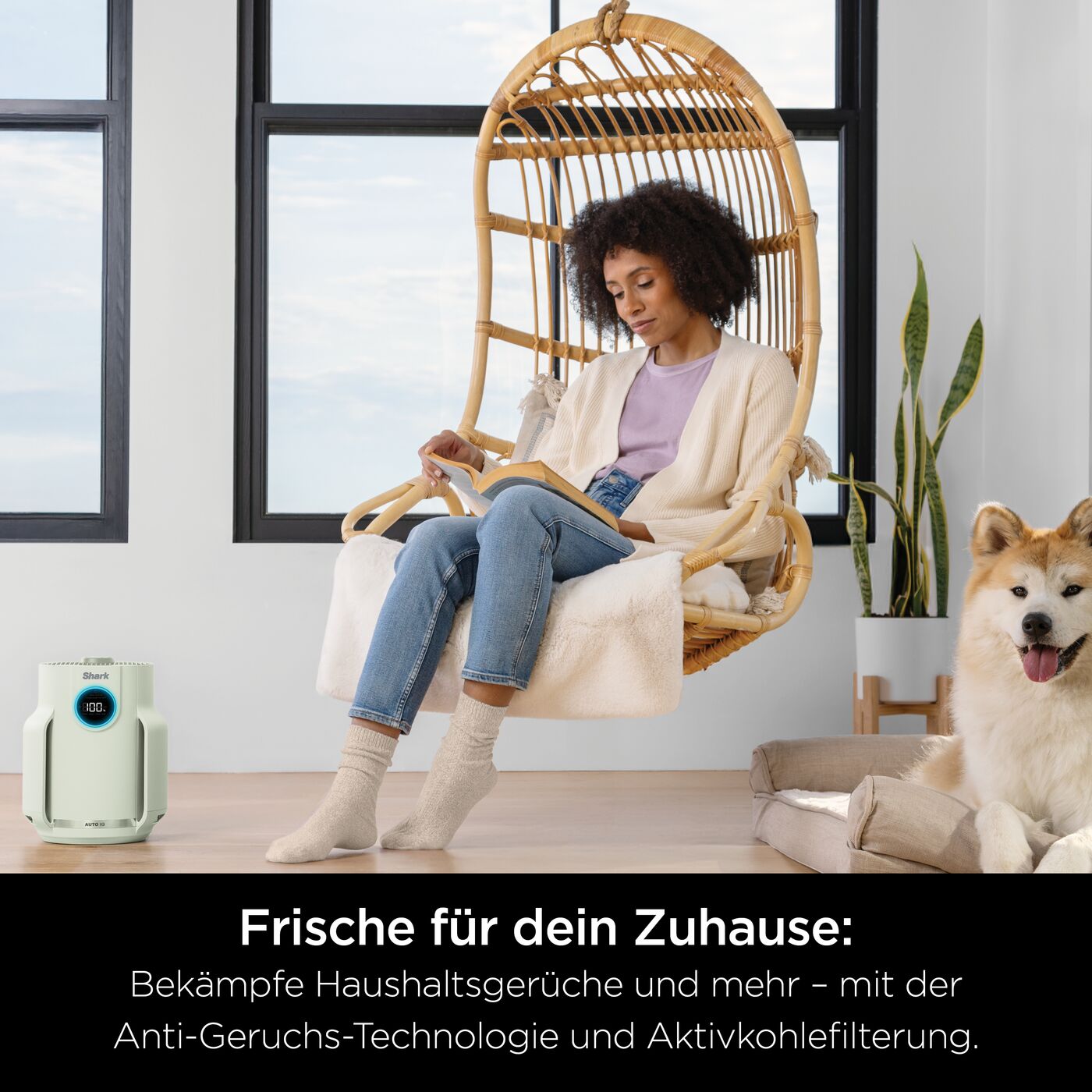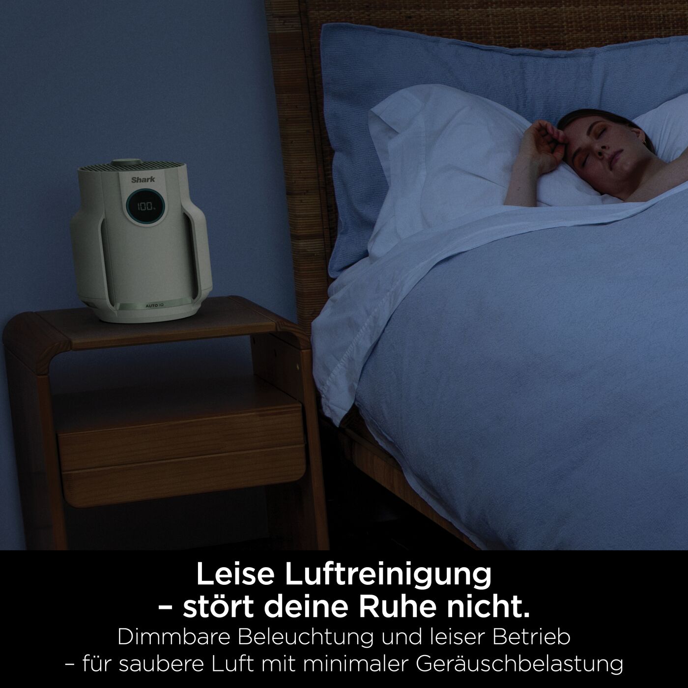 Wir präsentieren den kompakten Luftreiniger, der den ganzen Tag über saubere Luft liefert und 99,97 %* der Allergene und Reizstoffe einfängt – perfekt für Haushalte mit Allergien und Haustieren. Beobachte, wie sich die Luftqualität in Echtzeit verbessert mit Auto IQ, das die Leistung automatisch anpasst, um eine optimale Luftqualität zu gewährleisten. Die Anti-Odour-Technologie schützt vor unangenehmen Gerüchen und verströmt einen frischen Duft für ein angenehmer riechendes Zuhause. Mit einer Abdeckung von bis zu 23 m² bei einem Luftaustausch pro Stunde** und einer Abdeckung von 4 m² bei einem 4,8-maligen Luftaustausch pro Stunde** ist er ideal für kleine Schlafzimmer, Home Offices und Kinderzimmer. Zusätzlich sorgen dimmbare Lichter und leise Leistung dafür, dass du nicht gestört wirst. Dank des Shark NeverChange Filtrationssystems für bis zu 5 Jahre*** ist kein Filterwechsel erforderlich – sparst dir bis zu 200 € an Filterkosten.**** NUR EUROZONE-LÄNDER * Unbelebte Materie, basierend auf IEST-RP-CC007.4 99,97 % bei 0,1–0,2 Mikrometern. ** Basierend auf AHAM AC-1-2020, getestet im Modus Max (Maximal) ***Getestet gemäß GB/T18801-2022 P.CCM, basierend auf einer Senkung des CADR-Werts um 50 %, 12 m² Reinigungsbereich und 12 Stunden Einsatz täglich mit maximaler Lüftergeschwindigkeit. ****vs. Bestseller-Luftreiniger in Deutschland. Verkaufsdaten von Drittanbietern für Volumenverkäufe Juli ’23 - Juni ’24, basierend auf den vom Hersteller empfohlenen Filterkosten und Austauschintervallen über 5 Jahre