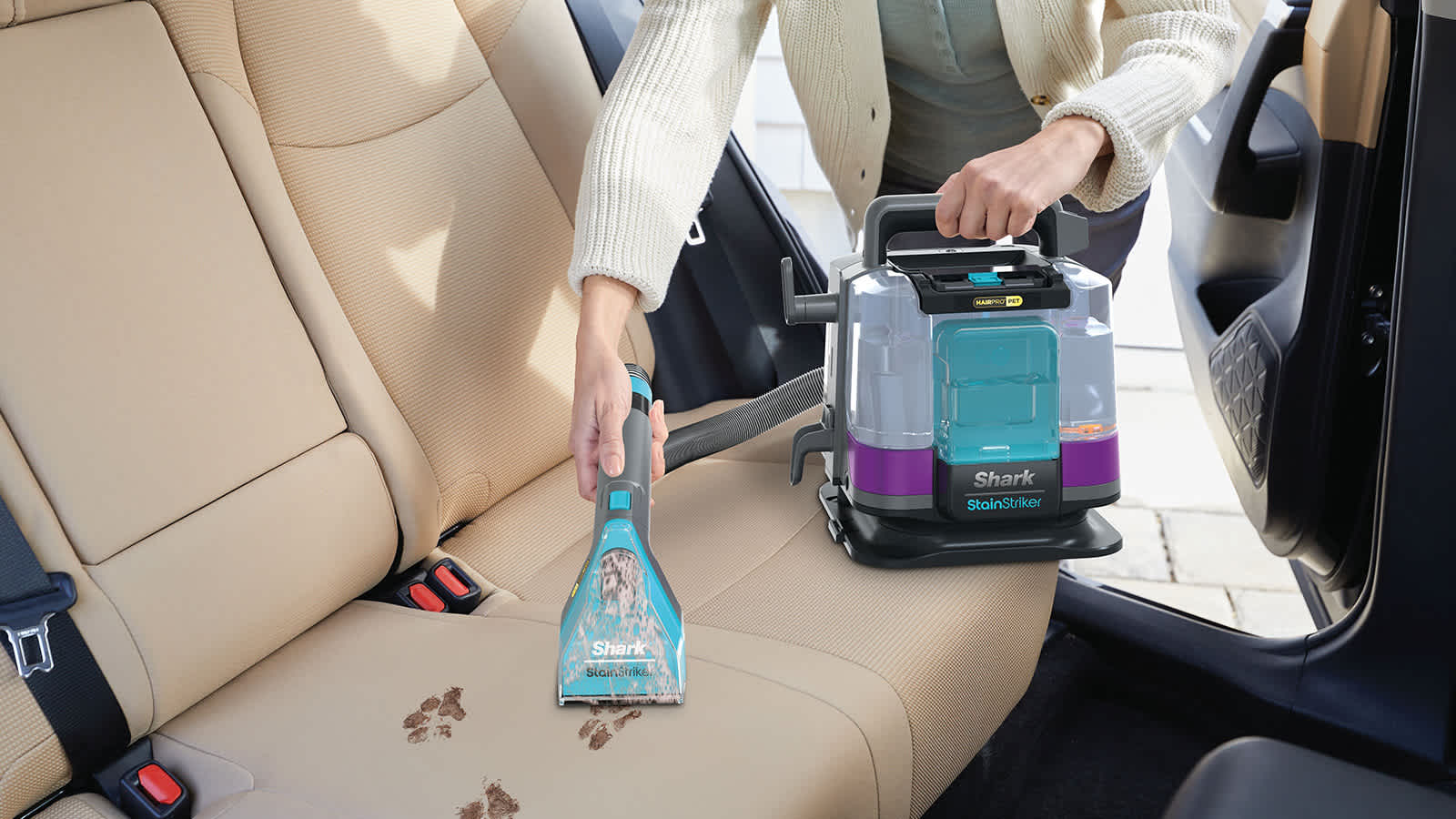 Ein Hochdruck-Sprühstrahl reinigt tief in den Fasern, während die kraftvolle Saugkraft von Shark Schmutz, Haare und Flüssigkeit entfernt – für eine schnelle Trocknung. Die Anti-Verstopfungs-Saugkraft sorgt dafür, dass Haare ungehindert in den Schmutzwassertank gelangen. Perfekt für die punktuelle Reinigung von Teppichen, Tierbetten, Treppen, im Auto und auf dem Lieblingsplatz Ihres Haustiers auf dem Sofa.