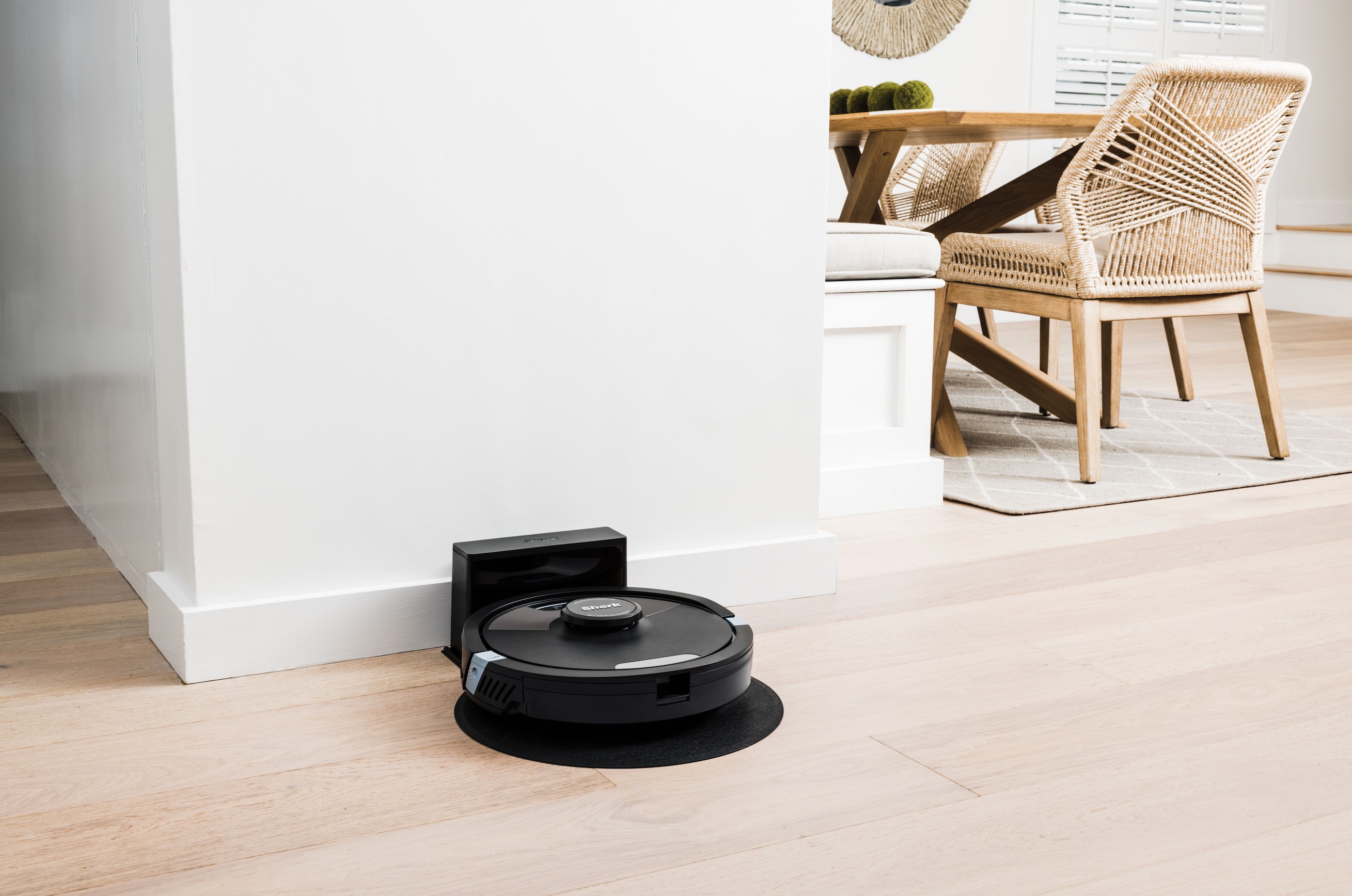 Die beutellose Basisstation nimmt bis zu 60 Tage lang Schmutz auf. Man muss keine zusätzliche Entsorgungsbeutel kaufen, und mit Recharge & Resume kehrt der Roboter zu seiner Basisstation zurück, lädt sich auf und kann dort weitermachen, wo er aufgehört hat. Bis zu 110 Minuten Laufzeit** mit einer Ladung.