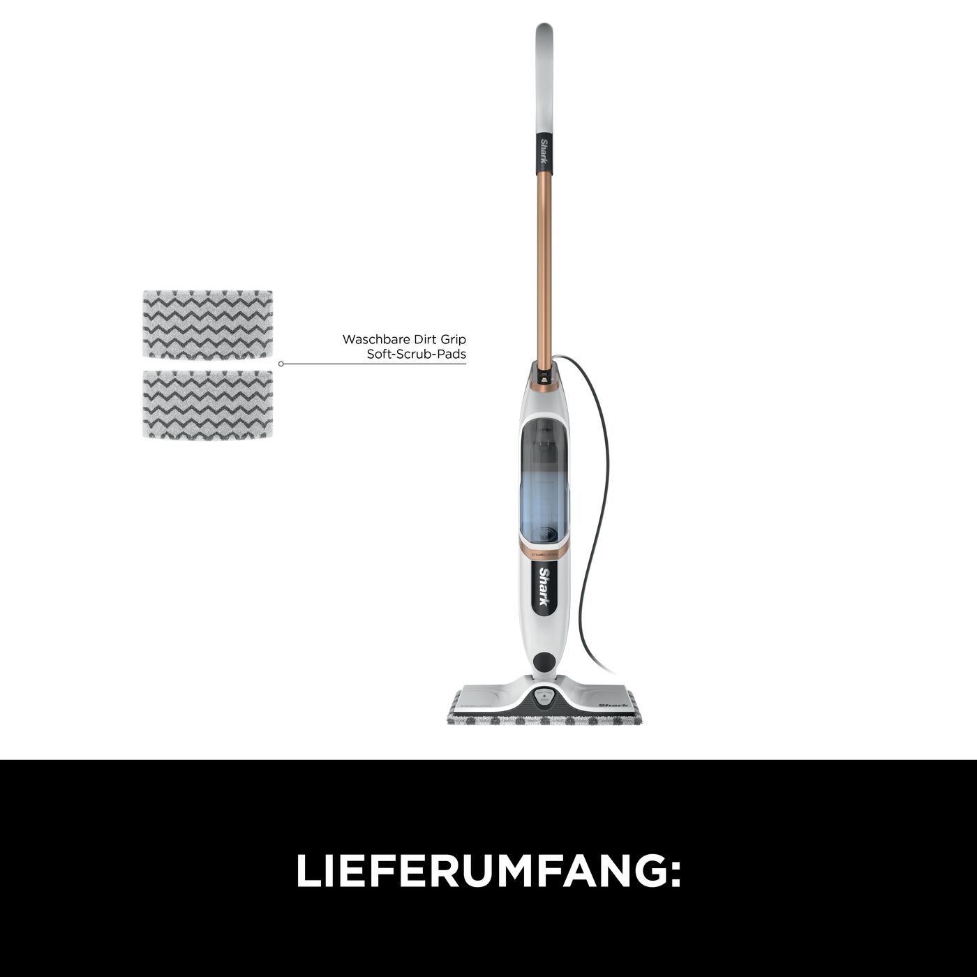 Shark S8201CH Steam & Scrub - Rotierender Automatischer Dampfreiniger Steam & Scrub mit Steam Blaster Technologie, sanft zu Oberflächen, stark gegen Schmutz - Weiss