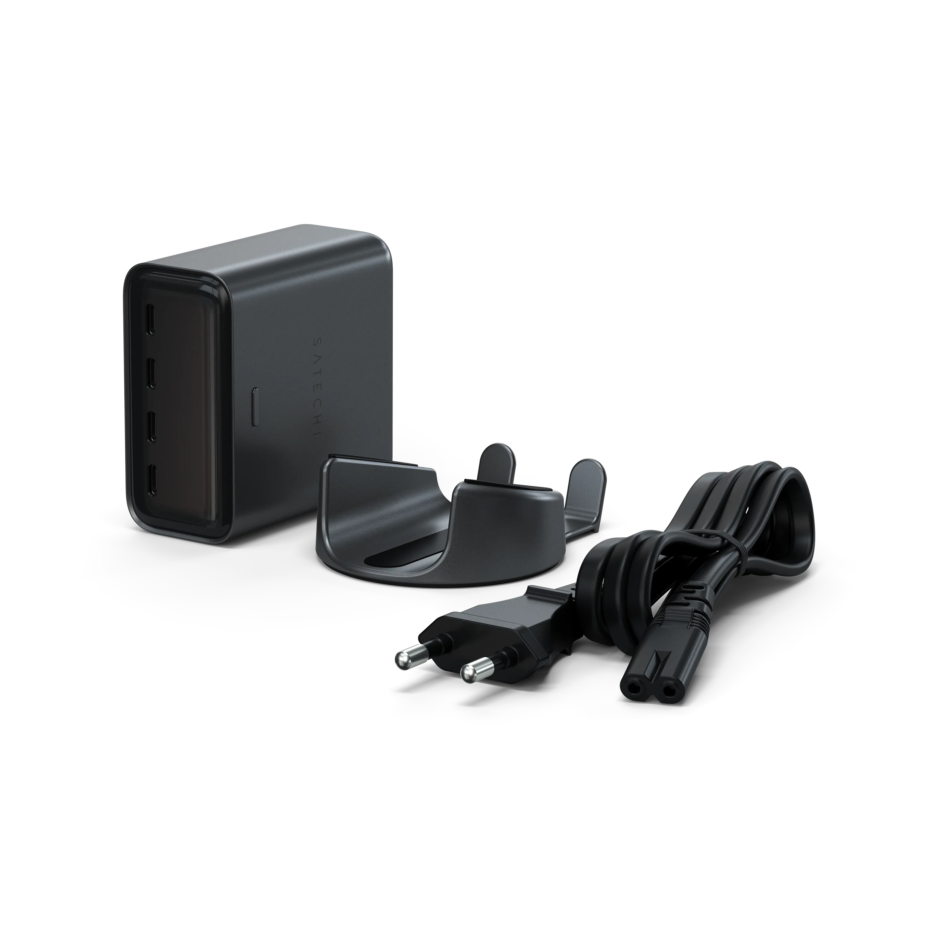 Satechi USB-C GaN Travel Charger 145W - Mobiles Gallium Nitride Ladegerät mit 145W und 4x USB-C PD Ladeports inkl. Adapter für EU/AU/UK/US - Space Gray