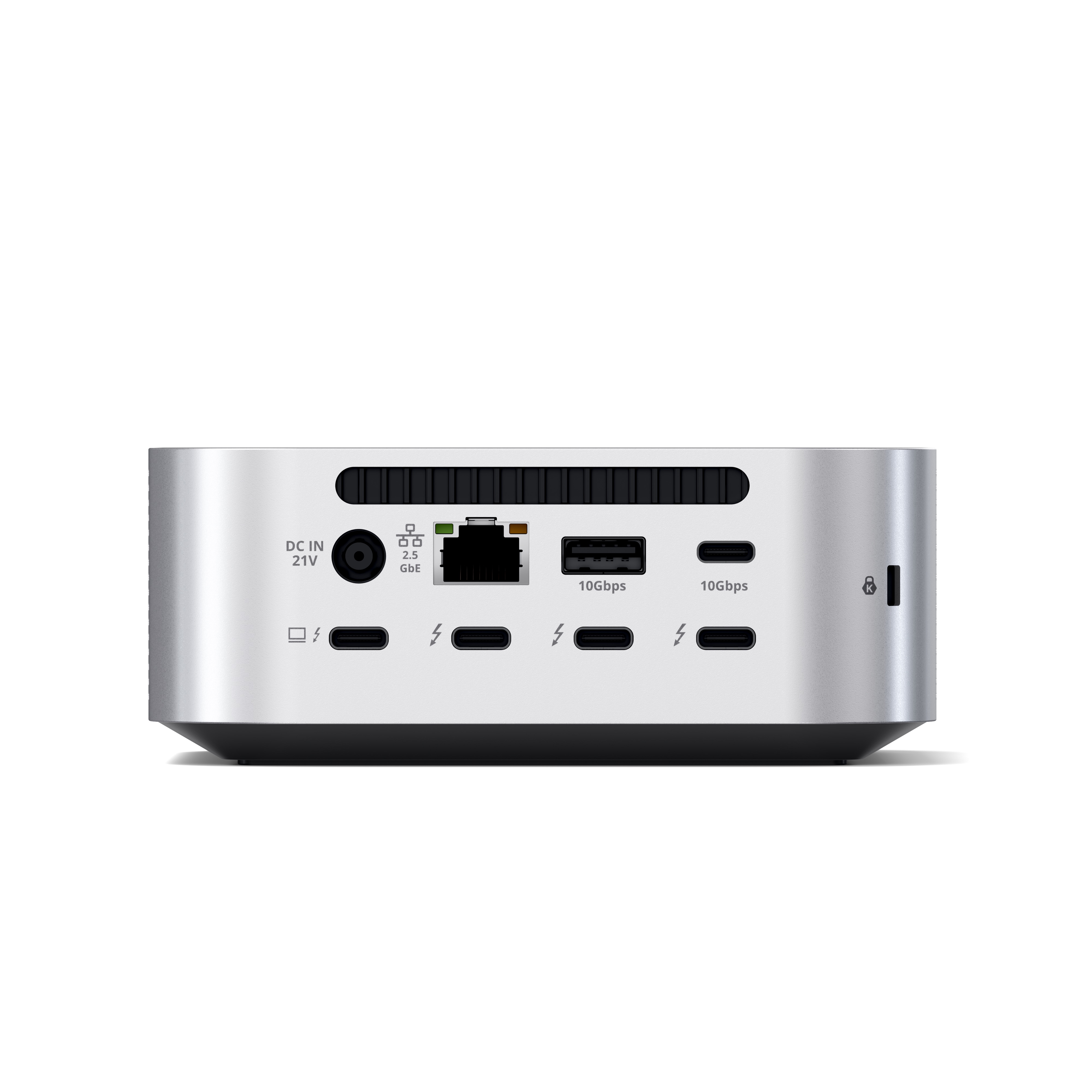 Hochwertiger Thunderbolt 5 Dock für Mac Mini M4 (oder alle Macs) mit 3x Thunderbolt 5 Ports, 2x USB-C & 2x USB-A Ports sowie 2.5 Gb Ethernet und SD- & microSD-Card Reader inkl. Fach für NVMe M.2 2230/2242/2260/2280 SSD - Silber
