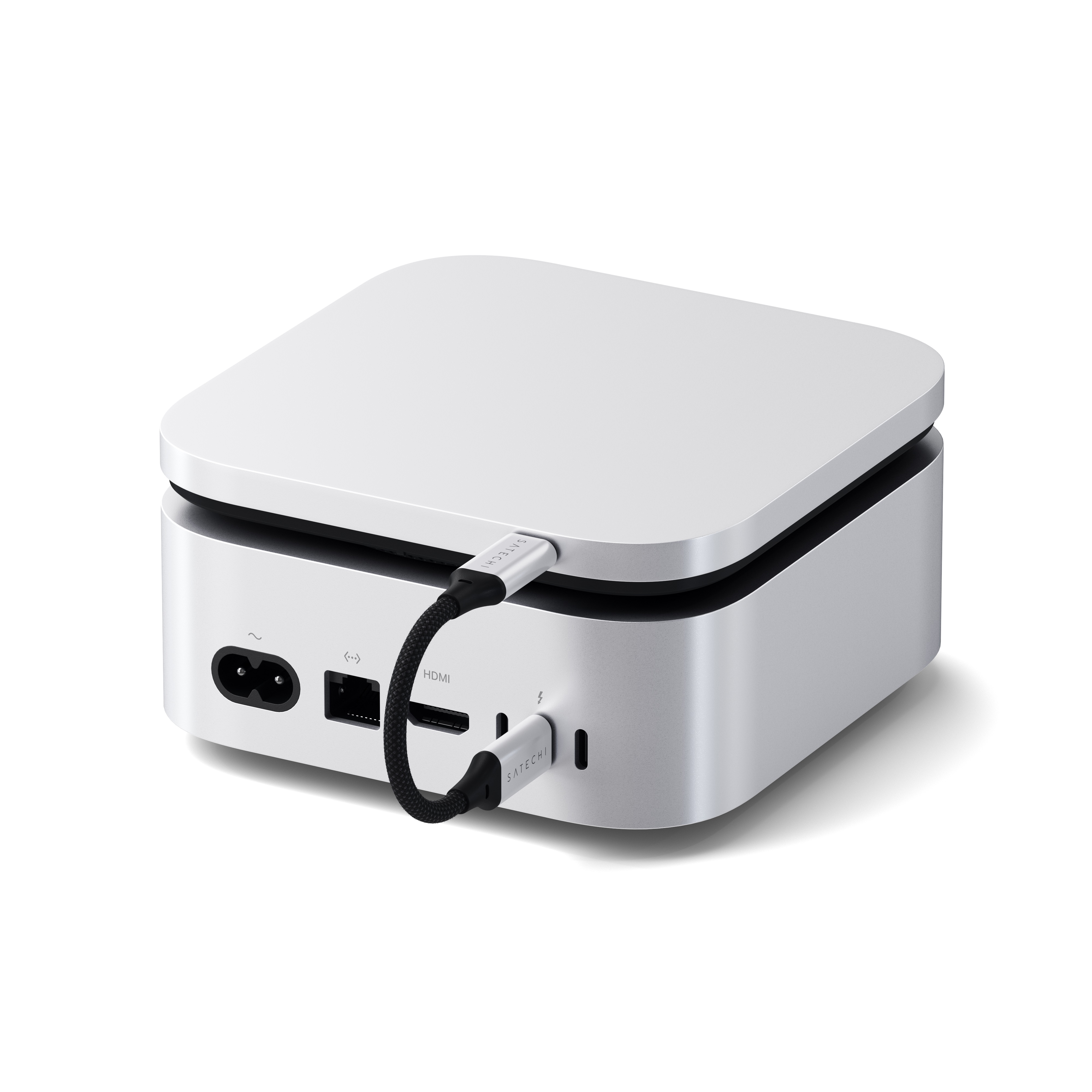 Satechi Mac Mini M4 Alu Stand & Hub m. NVME SSD - Hochwertiger und eleganter Untersatz für Mac Mini M4 mit 3x USB-A Ports, SD-Slot und Power On Aussparung inkl. Fach für NVMe M.2 2230/2242/2260/2280 SSD - Alu
