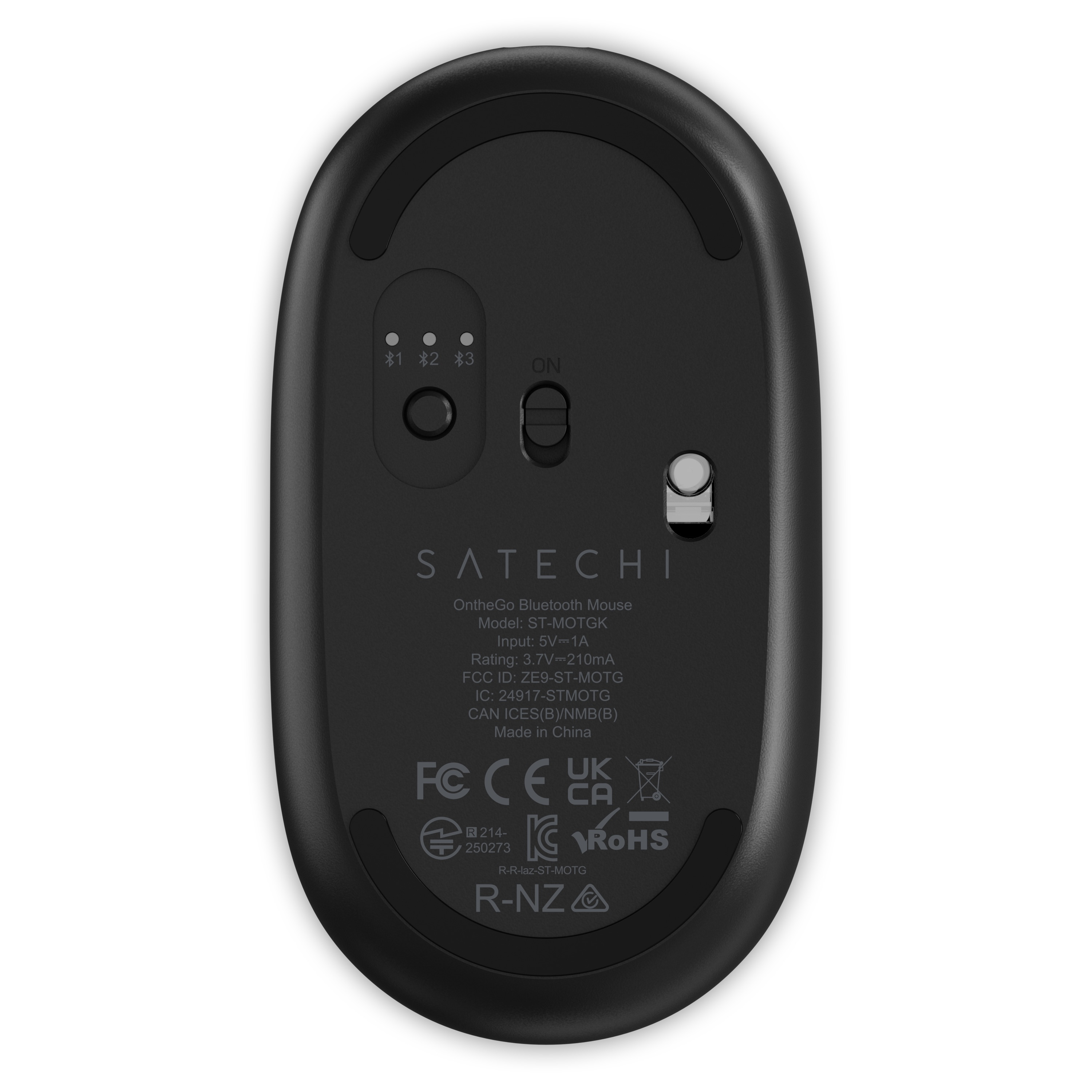 Stylische, hochwertige OntheGo Multisync Maus für bis zu drei Geräte (BT 5.1) mit Soft-Touch Oberfläche und integriertem Akku (USB-C) - Schwarz