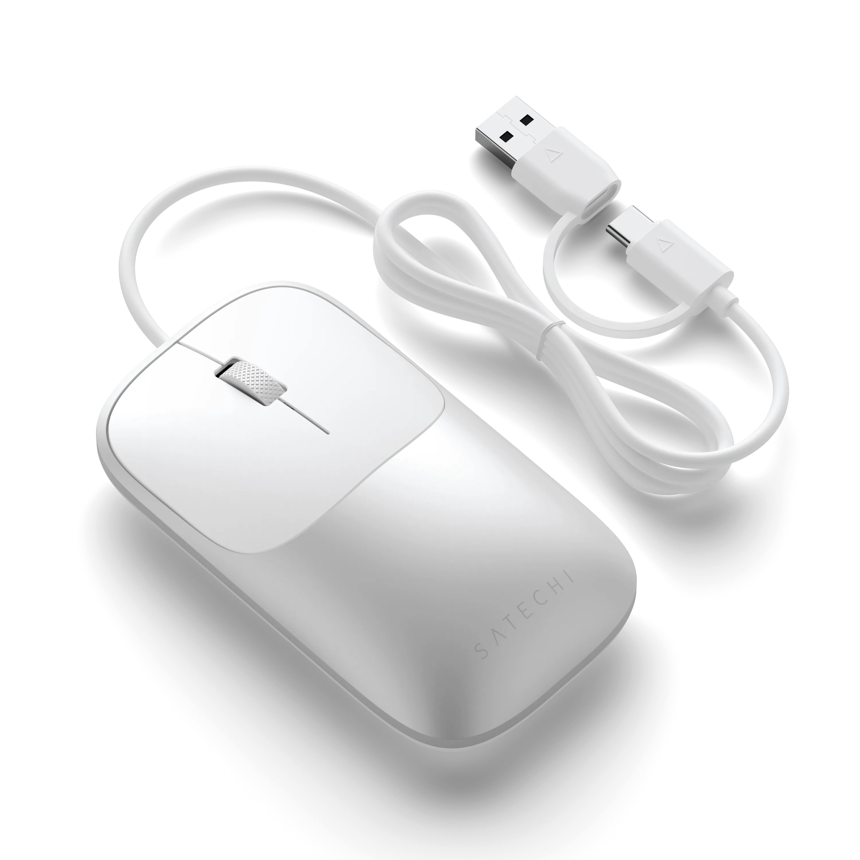 Stylische, hochwertige kabelgebundene USB-C Maus mit Soft-Touch Oberfläche - Weiss-Alu