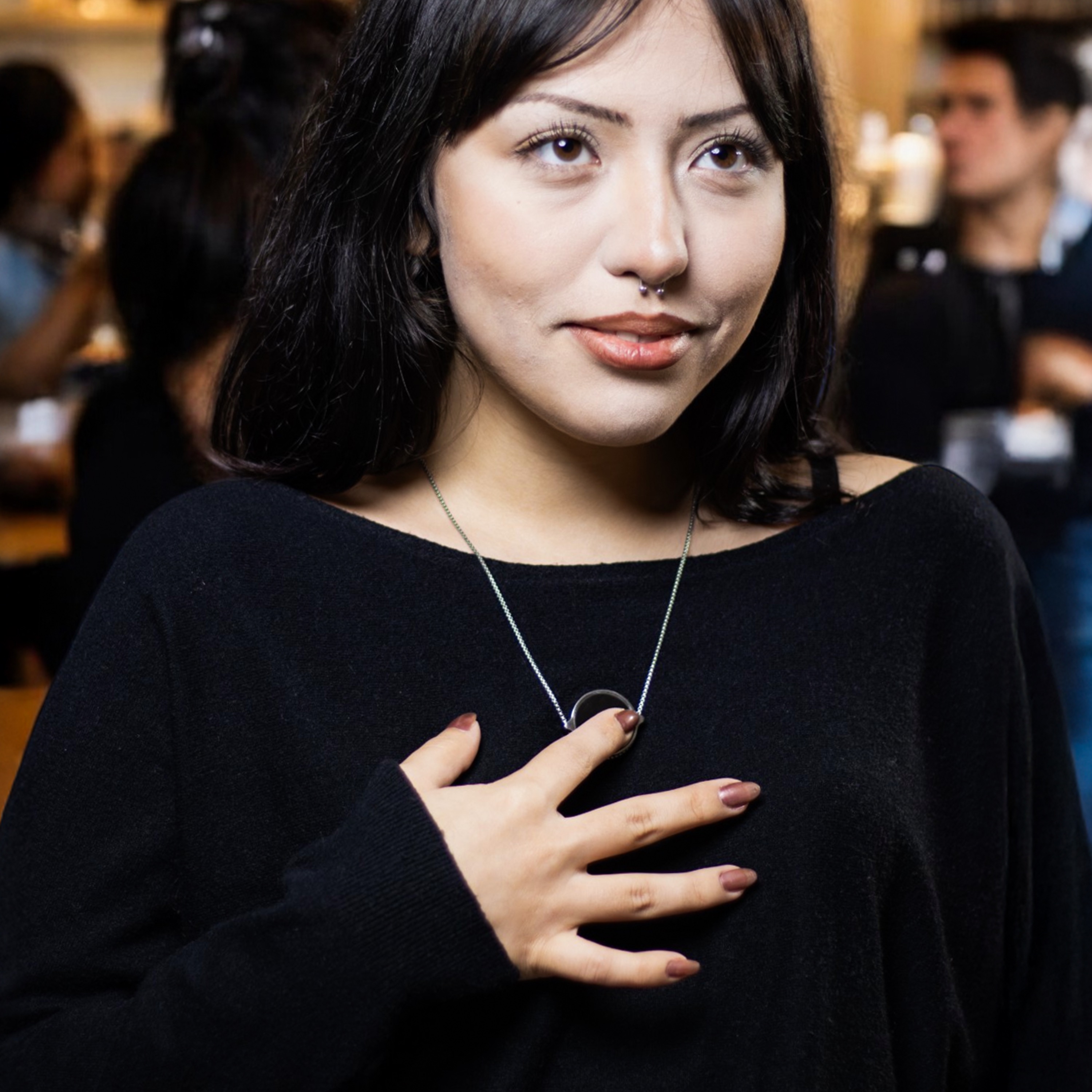 Smarte Vibrations-Halskette zur sanften Stimulation der Thymusregion – tragbar wie ein elegantes Schmuckstück, aktivierbar in wenigen Sekunden. - Silber