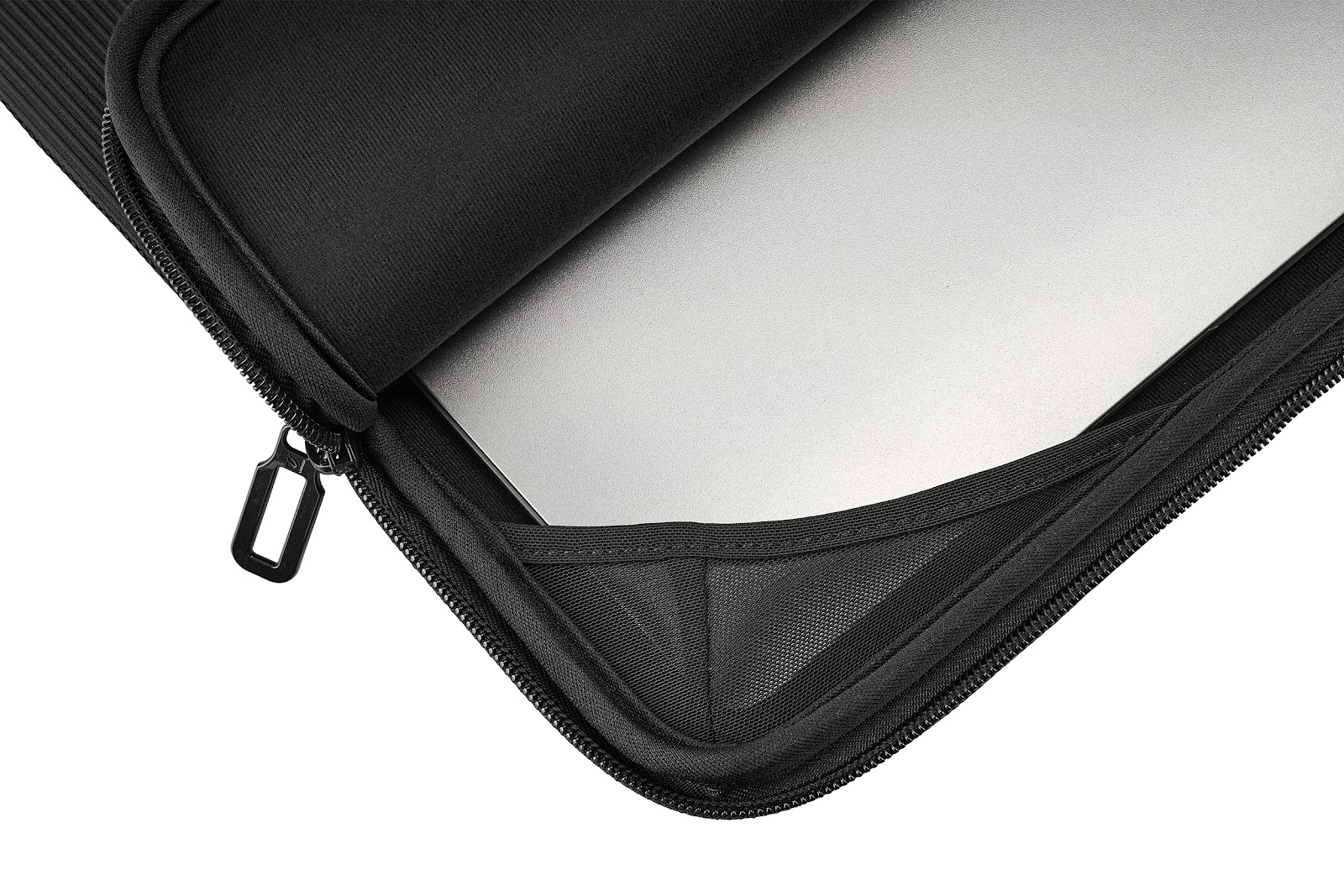 Zusätzliche Sicherheit. Der konturierte innere Reißverschluss bietet einen weiteren Schutz für Ihr Gerät, während der doppelte Reißverschluss das Öffnen und Schliessen des Sleeves erleichtert.