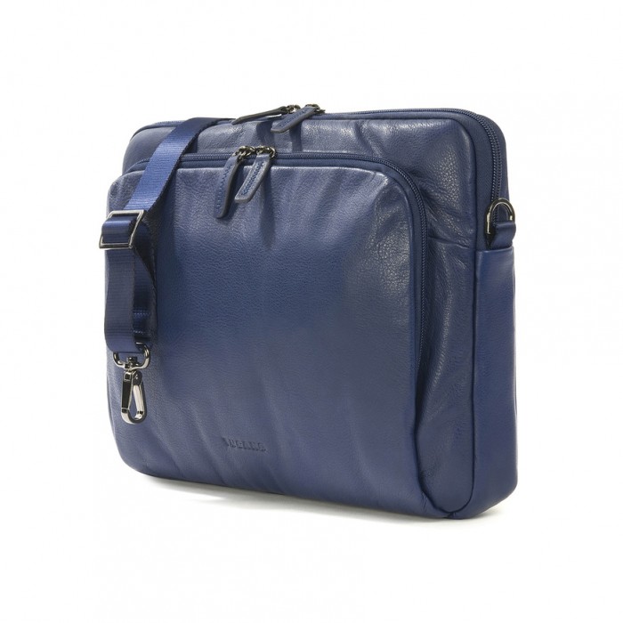 Klassische Ledertasche, sehr hochwertig verarbeitet, mit Fronttasche und Innenfächer, für MacBook/Notebook bis 13.3" - Blau