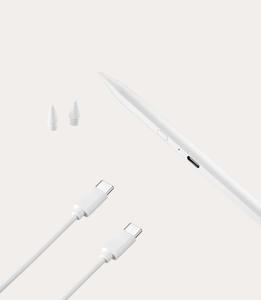 Aktiver kapazitiver Stift für alle iPad-Modelle ab 2018 mit langer Akkulaufzeit (bis zu 50 Stunden*). Ausgestattet mit Palm Rejection-Technologie, dank der Sie Ihre Handfläche beim Schreiben ruhig auf dem Bildschirm ablegen können, sodass Sie sich ganz auf Ihre Tätigkeit konzentrieren können. Ermöglicht das Schreiben, Zeichnen und Notieren ohne Bluetooth-Kopplung oder -Aktivierung. Ausgestattet mit USB-C-Anschluss für schnelles Aufladen, USB-C-Kabel und 2 Ersatzspitzen im Lieferumfang enthalten.*Die tatsächliche Betriebsdauer hängt von der Art der Nutzung ab. Die Angabe bezieht sich auf eine Nutzung mit mittlerer Intensität.