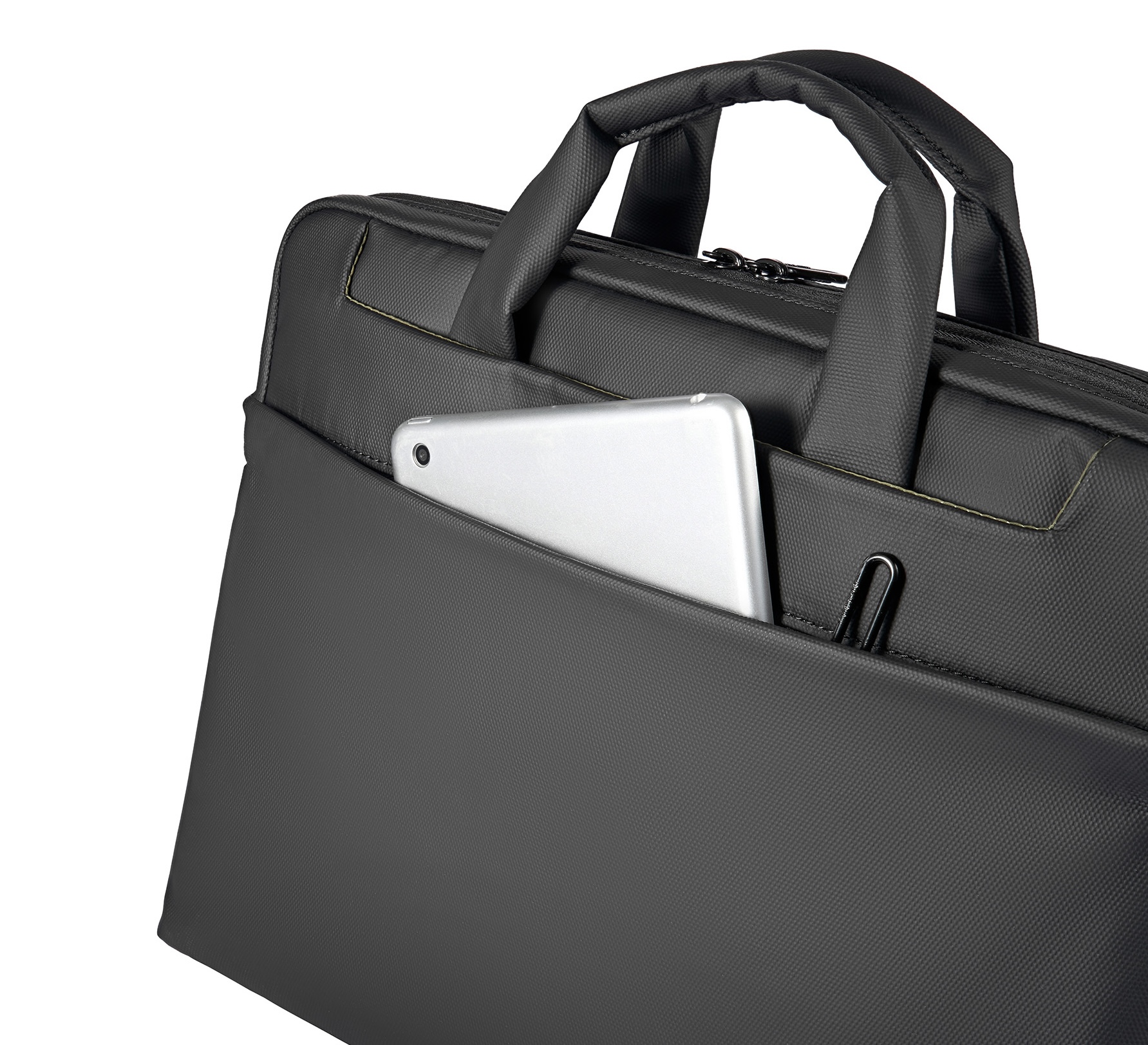 Kompakte Laptoptasche aus beschichtetem, recyceltem Material mit gepolstertem Laptopfach, durchdachter Innenorganisation und abnehmbarem Schultergurt für alle MacBooks bis 14" und Laptops bis 13" - Black