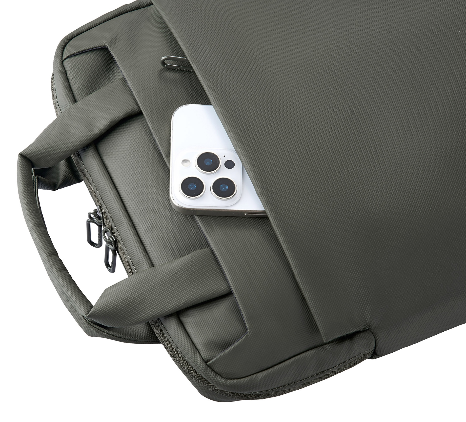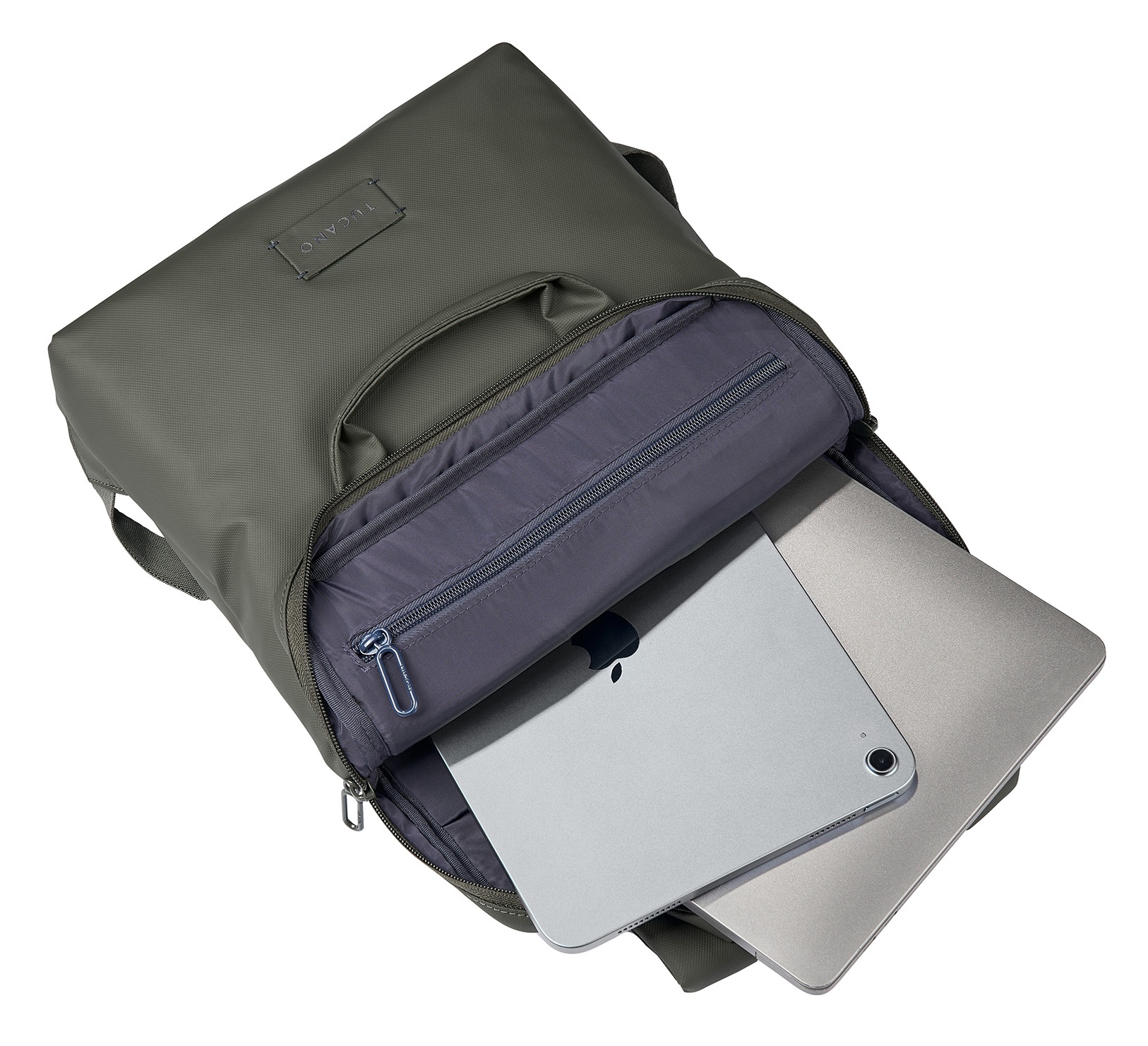 Kompakter Rucksack aus beschichtetem, recyceltem Material mit gepolstertem Laptopfach, durchdachter Innenorganisation und leichtem Tragekomfort für alle MacBooks bis 14" und Laptops bis 13" - Green