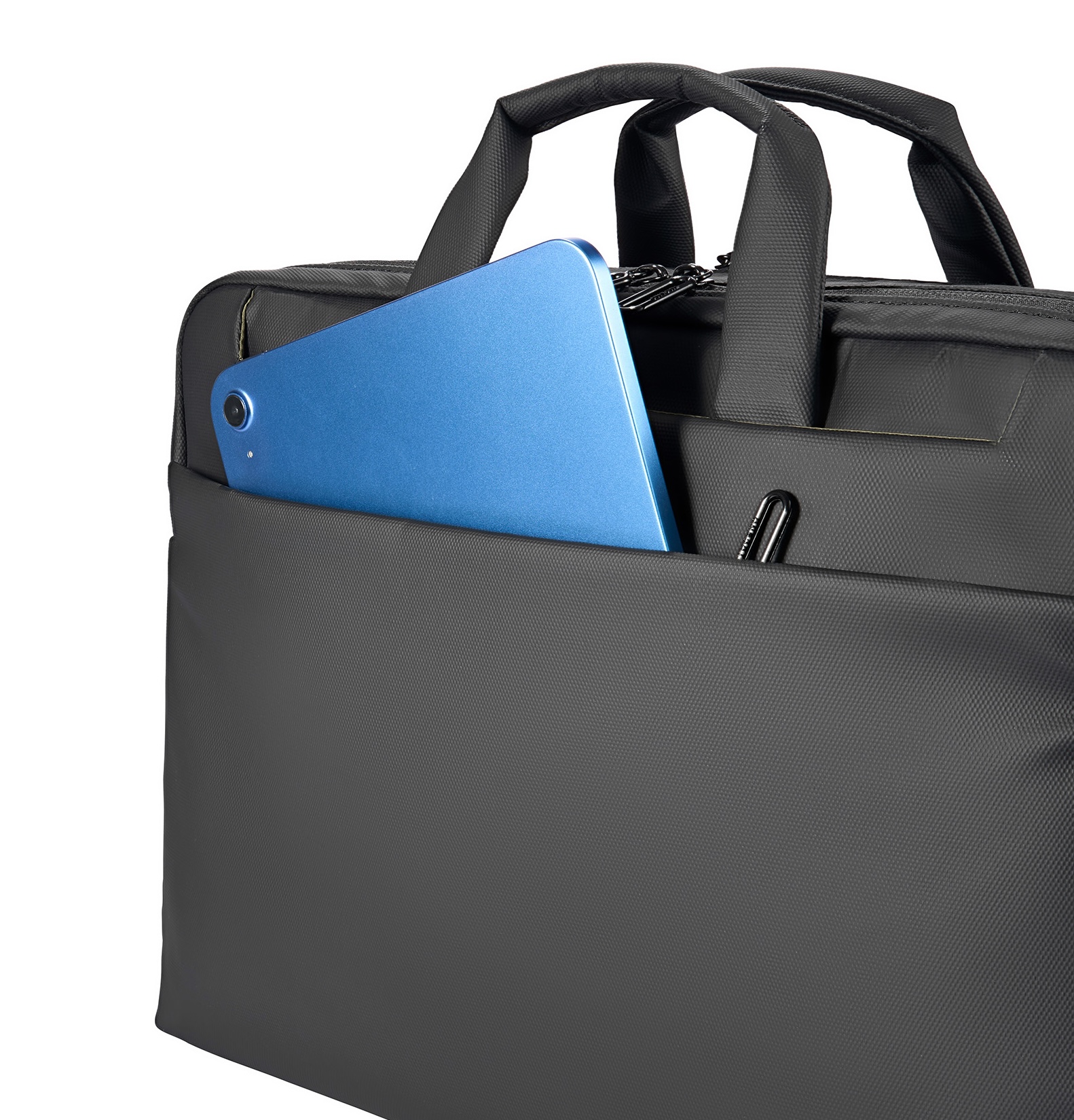 Kompakte Laptoptasche aus beschichtetem, recyceltem Material mit gepolstertem Laptopfach, durchdachter Innenorganisation und abnehmbarem Schultergurt für alle MacBooks bis 16" und Laptops bis 15.6" - Black