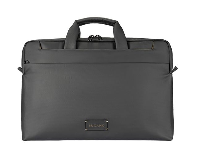 Tucano Global 15.6" Laptoptasche - Schmale & kompakte Laptoptasche mit Fach auf Vorderseite und gut gepolstertem Laptop Fach ffür Macbook Pro 16" / Notebook bis 15.6" Inkl. abnehmbaren Schultergurt - Schwarz