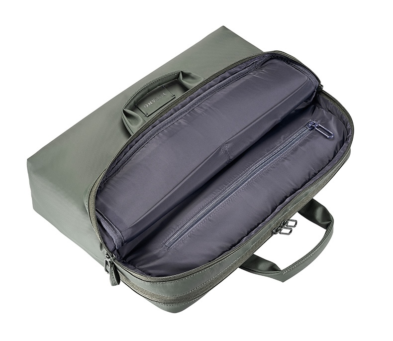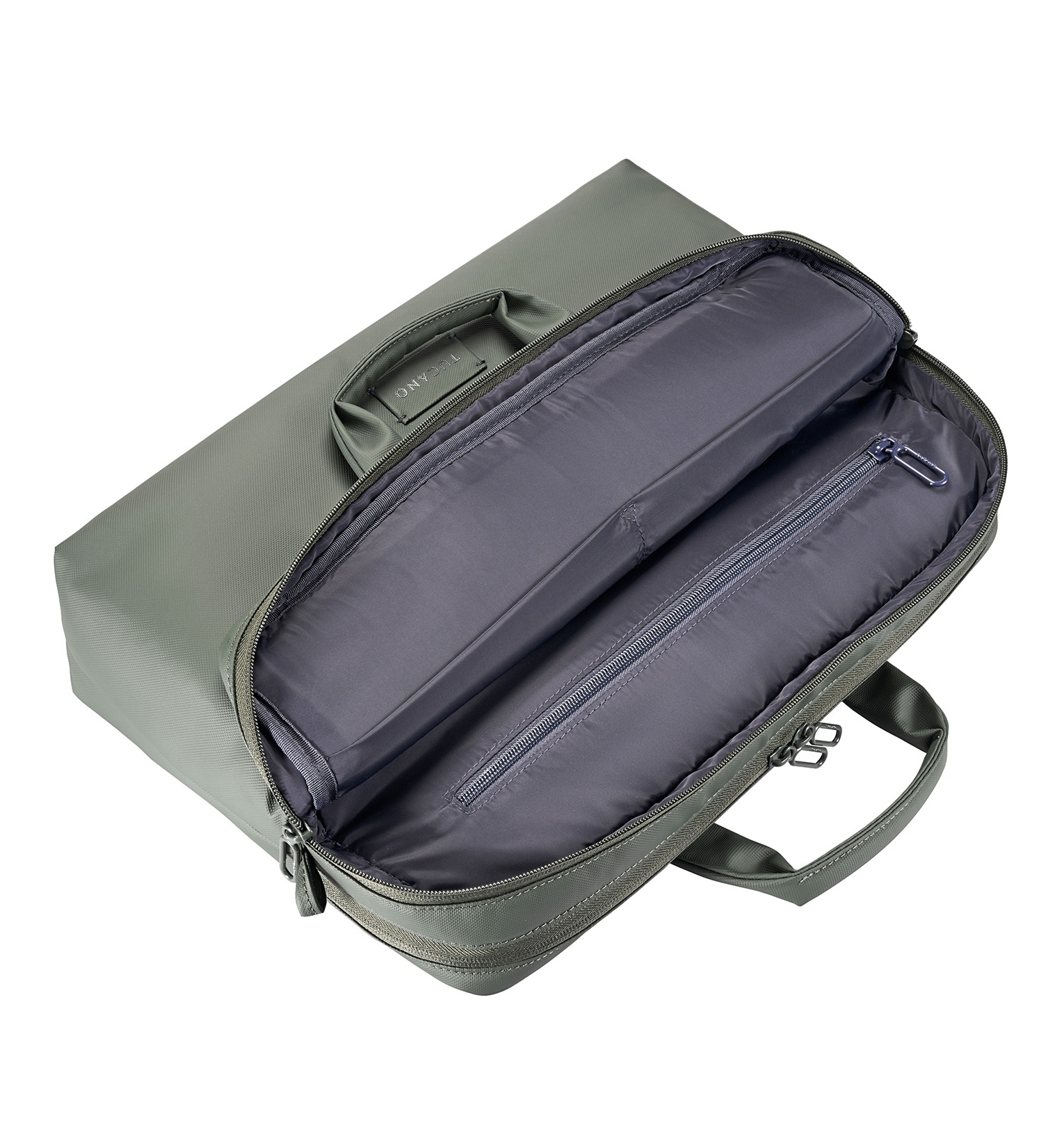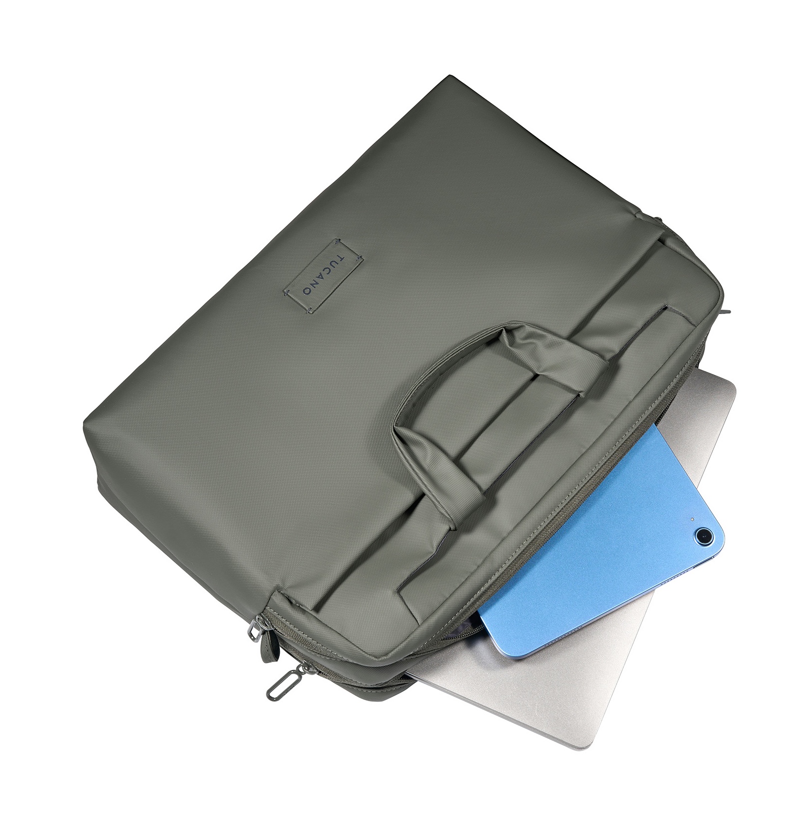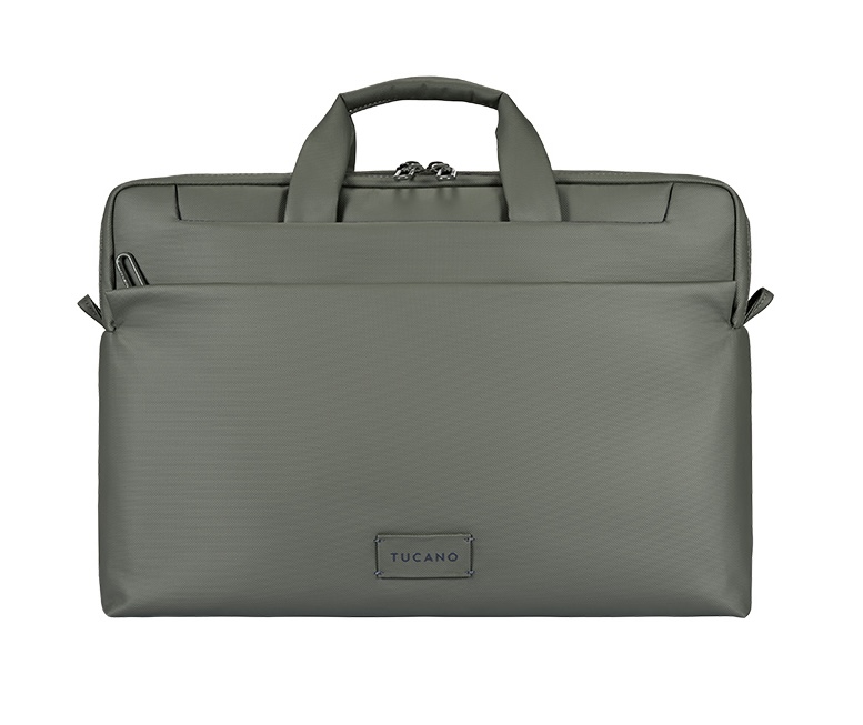 Kompakte Laptoptasche aus beschichtetem, recyceltem Material mit gepolstertem Laptopfach, durchdachter Innenorganisation und abnehmbarem Schultergurt für alle MacBooks bis 16" und Laptops bis 15.6" - Green