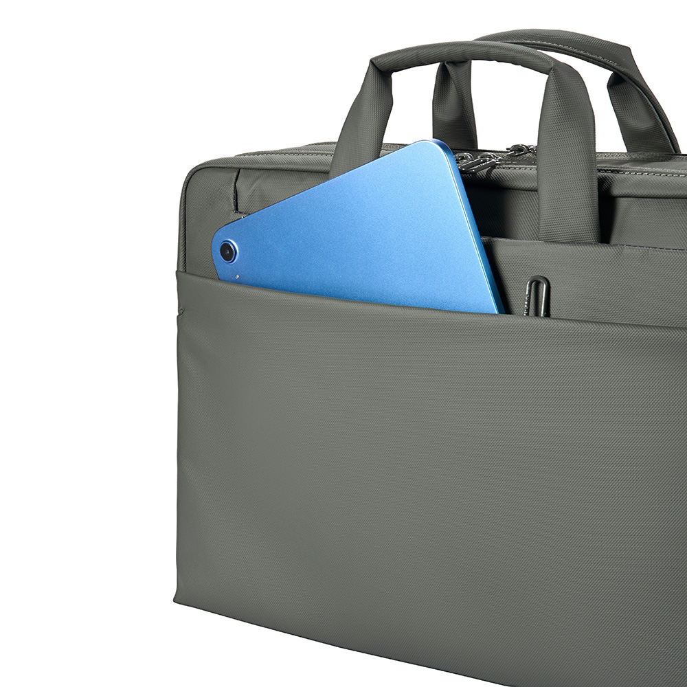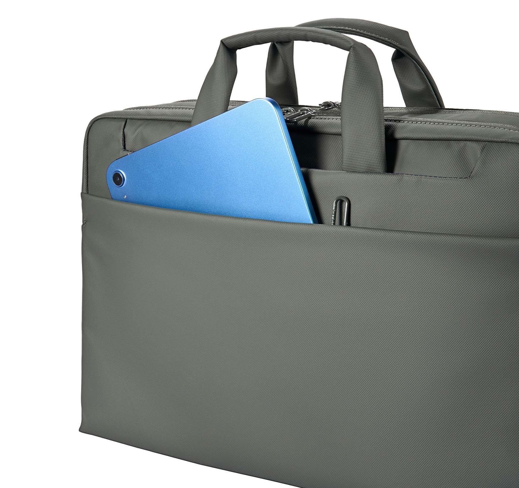 Die Work Out 5 ist die perfekte Tasche für alle, die im Alltag mehr Platz benötigen, ohne auf ein schlankes und modernes Design zu verzichten. Ob im Büro, im Homeoffice unterwegs oder auf Geschäftsreise – mit ihren zwei getrennten Fächern sorgt sie für optimale Organisation und schnellen Zugriff auf Laptop, Unterlagen und Zubehör. Das kontrastierende Innenfutter setzt dabei nicht nur einen stilvollen Akzent, sondern erleichtert auch die Übersicht über den Inhalt.Gefertigt aus beschichtetem Stoff aus recyceltem Kunststoff, verbindet die Tasche Nachhaltigkeit mit zuverlässigem Schutz vor den täglichen Beanspruchungen. Das gepolsterte Innenfach bietet sicheren Halt für ein MacBook bis 16" oder Laptops bis 15.6", während die durchdachte Aufteilung ausreichend Platz für Dokumente, Ladegeräte und persönliche Essentials bietet.