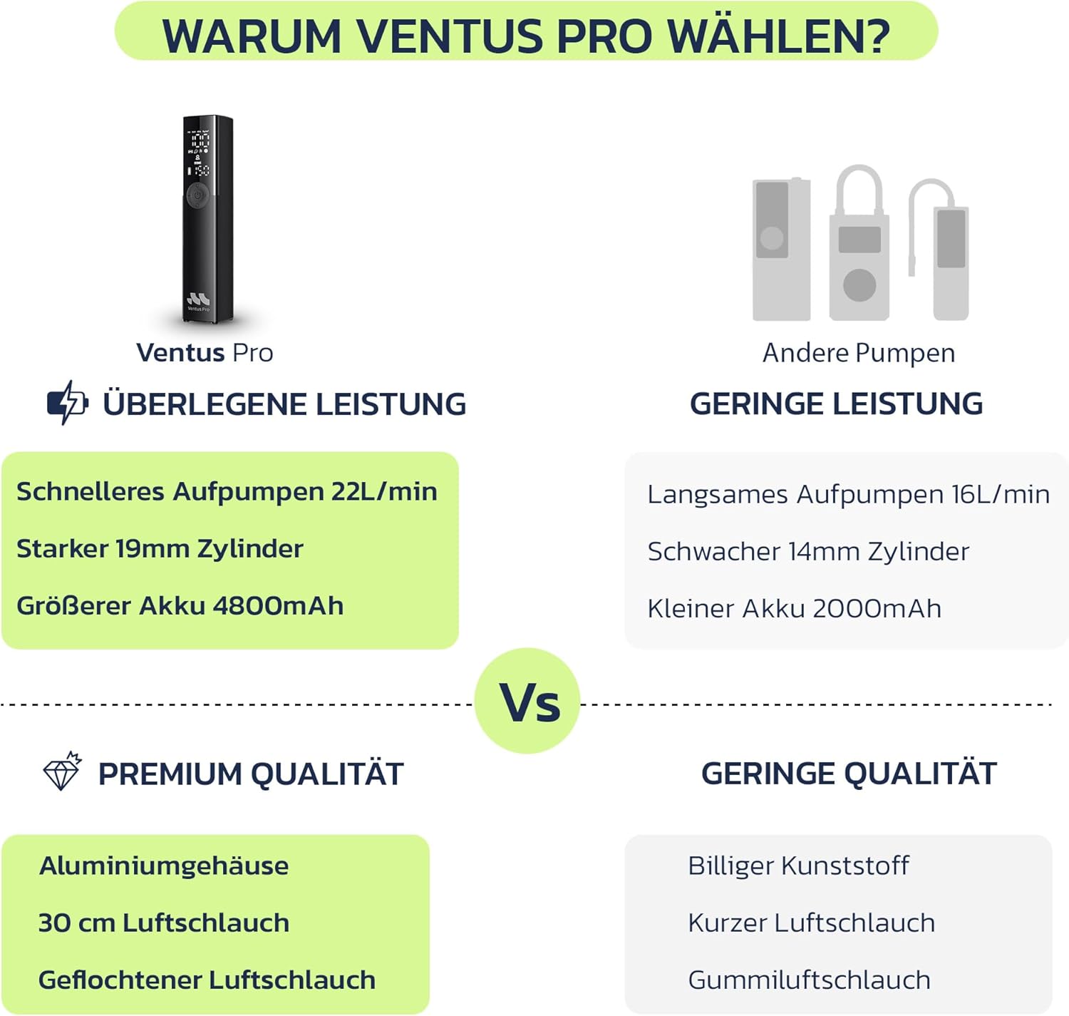 Pompe à air Ventus Pro compacte et puissante avec des performances 2x plus rapides et un kit de réparation d'urgence