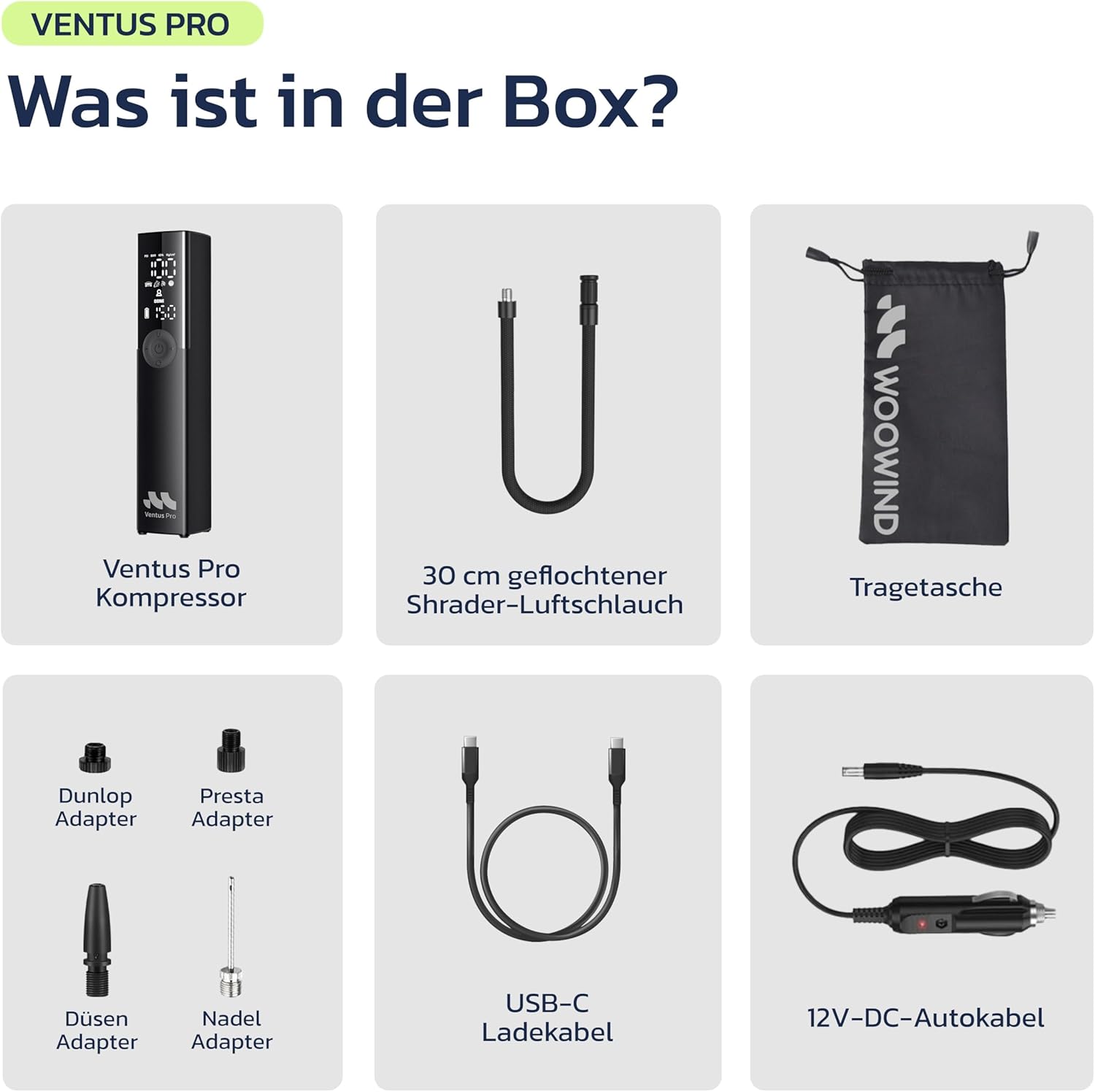 Un gonflage efficace et rapideLe Woowind Ventus Pro est votre nouveau compagnon pour tous les besoins en matière de pneus. Avec une capacité impressionnante de 24 litres par minute, vous pouvez gonfler vos pneus en une minute seulement. Que ce soit pour une voiture, une moto ou un vélo, le Ventus Pro vient facilement à bout des pneus les plus grands avec une pression maximale de 150 PSI.
