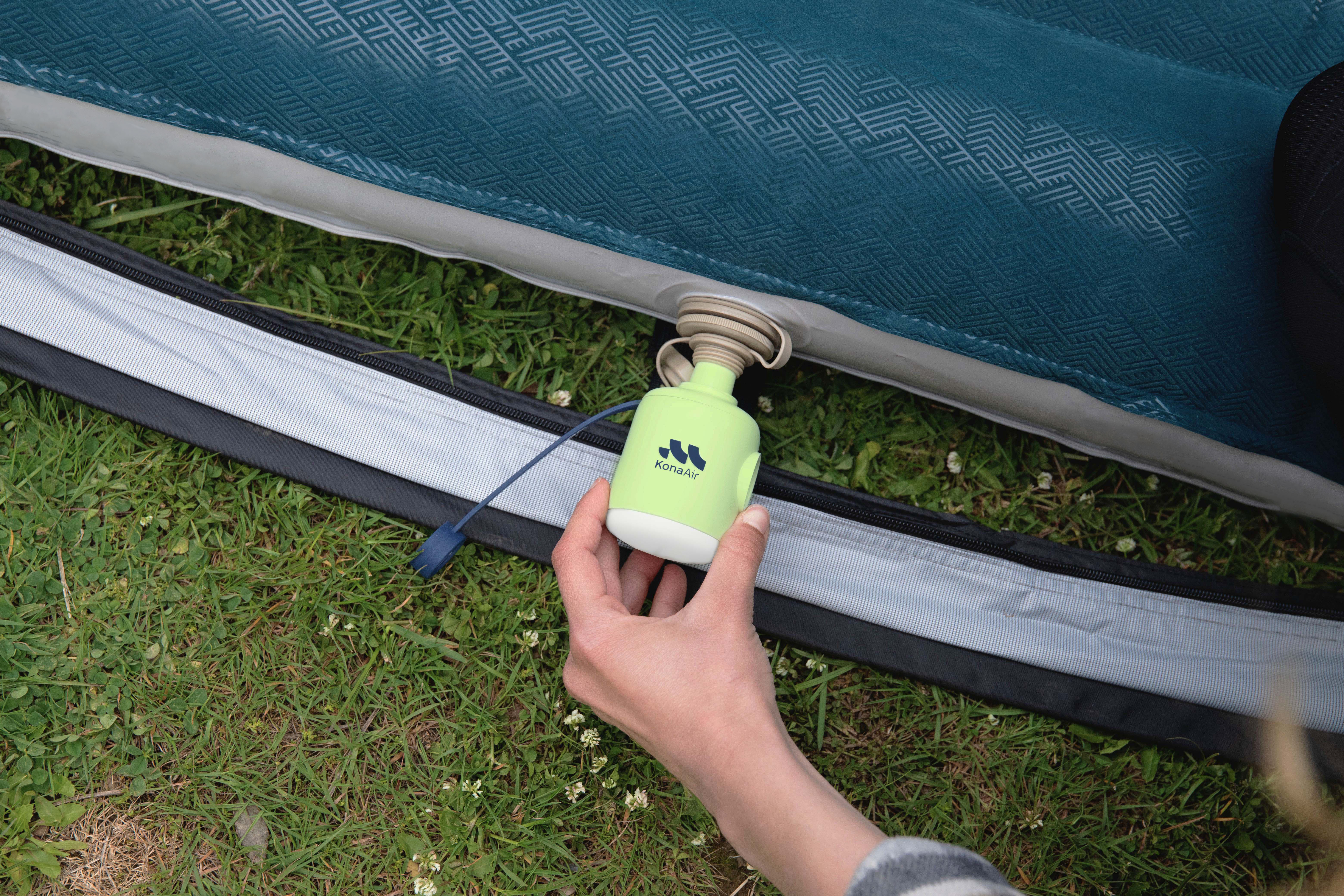 Woowind Kona Air è il compressore d'aria ideale per gli appassionati di outdoor. Con un flusso d'aria fino a 200 litri/min, consente di gonfiare in modo rapido ed efficiente materassi ad aria, giochi da piscina e tende da campeggio.Design ergonomico