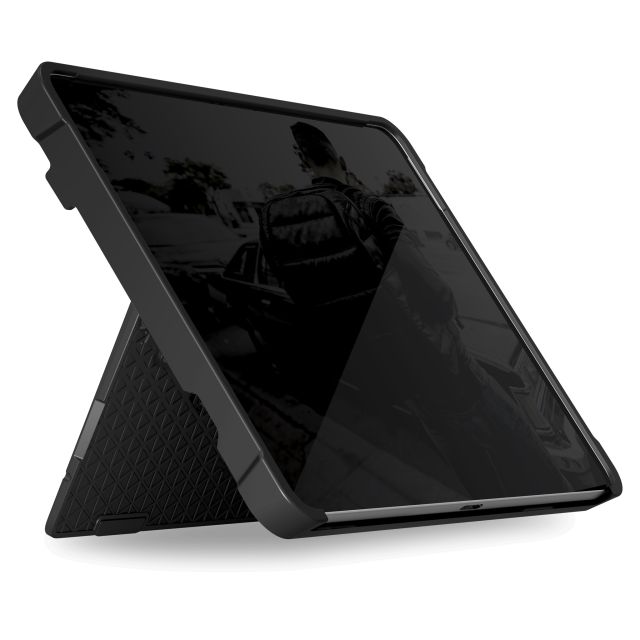 Schlankes und robustes Case (MIL-STD-810H geprüft) für das Surface Pro 12" mit transparenter Rückseite und 180 Grad flexiblen Betrachtungswinkel, kompatibel mit dem Surface Slim Pen - Schwarz