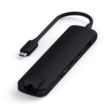 Satechi USB-C Slim Alu Multiport Hub - Eleganter USB-C Hub mit Gigabit Ethernet Port, USB-C PD Ladeport (-60W), 4K HDMI Video, 2x USB-A 3.0 Ports sowie Micro- und SD-Card Reader - Schwarz