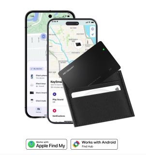 KeySmart SmartCard V3 (Apple & Google Find My) - Ultradünner Walletfinder mit Bluetooth & Community Suche funktioniert mit Apple Find My auf dem iPhone oder Googles Find Hub auf Android - Schwarz