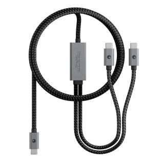 Rolling Square Cerbero 2in1 USB-C zu USB-C 100W - Elegantes 150 cm langes USB-C zu Doppel USB-C aus robustem Nylongeflecht & 100W Ladegeschwindigkeit - Schwarz