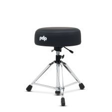 Pacific Drums & Percussion PDDT810R Round-Top Throne - 800 Series Round-Top Throne gepolsterter Sitz mit verstrebten Dreibeinfuss - Schwarz-Silber
