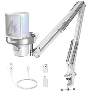 Maono DM30RGB USB Mikrofon - RGB Plug & Play USB-Mikrofon mit steuerbarer Beleuchtung, Unterdrückung von unerwünschten Hintergrundgeräuschen, Multifunktionaltaste und vielen Einstellungsmöglichkeiten durch die Maono Link Software - Weiss