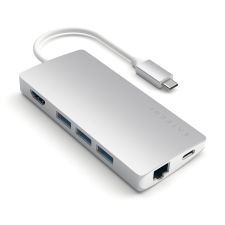 Satechi USB-C Alu Multiport Hub - Hochwertiger USB-C Hub mit Gigabit Ethernet Port, USB-C PD Ladeport, 4K HDMI, 3x USB-A Ports sowie einen SD- und MicroSD-Card Slot - Silber