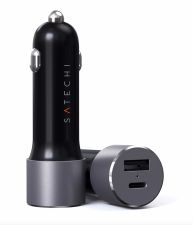 Satechi USB Dual Car Charger V2 mit 72W - Dual Autoladegerät 72W mit 1x USB-C PD Port (60W) und 1x USB-A Port (12W) zum Laden von MacBook / MacBook Pro, Smartphones, Tablets etc. - Space Gray/Anthrazit