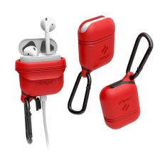 Catalyst Wasserdichtes Case für Apple AirPods - Premium Silikoncase, schützt Apple AirPods gegen Wasser, Sand, Stösse + Kratzer, wasserdicht bis zu 1m, inkl. abnehmbarem Karabinerhaken - Red