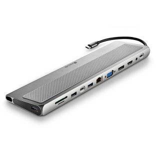 NGS WONDERDOCK 12 PRO USB-C Hub mit 12 Ports - Eleganter Aluminium Dock und Ständer mit 12 Ports für PCs & MacBook Air / Pro mit Gigabit Ethernet-, 3x USB-A, DisplayPort, HDMI 4K 60Hz, VGA, USB-C, USB-C PD 100W Port, SD- und MicroSD-Kartenslot, 3.5mm Klinkenport - Space Gray